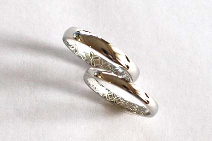 リングの内側にこだわりました。和柄が好きな奥様のご希望で七宝が連なったデザインを配置し、