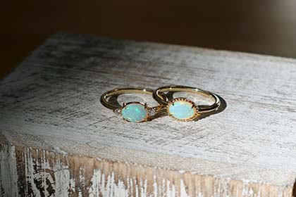 イヤリングについていたオパールの石を2本のリングにリフォーム。